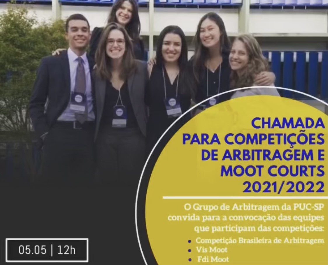 O Grupo de Estudos em Arbitragem e Compra e Venda Internacional realiza, dia 5/5, às 12h, reunião virtual para apresentar as competições de arbitragem e direito internacional das quais participa: Competição Brasileira de Arbitragem, Vis Moot e FDI Moot.
