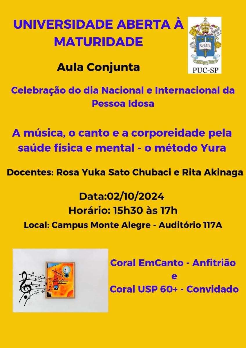 A Universidade Aberta à Maturidade (UAM) celebra o Dia Nacional e Internacional da Pessoa Idosa com a aula conjunta A música, o canto e a corporeidade pela saúde física e mental – o método Yura.