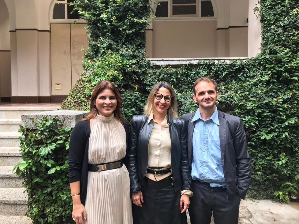 Foto 2: Profa. Ana Rachel, Profa. Clarissa e Prof. Julien