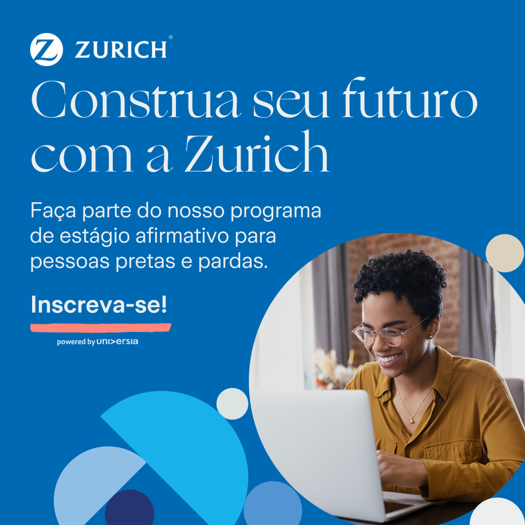 O Setor de Estágios da PUC-SP informa que a Zurich, uma das maiores seguradoras do mundo, está com diversas oportunidades em seu Programa de Estágio Afirmativo para Pessoas Pretas.
