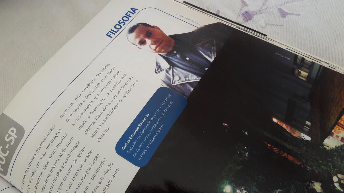 Neste mês, Carlos Eduardo Bernardo, ex-discente de Filosofia, lança seu primeiro livro: Humanae Absurdum: a imagem do humano na obra de Albert Campus. A obra é resultado de anos de pesquisa e foi originalmente apresentada como dissertação de Mestrado na Universidade de São Paulo. O livro se trata da apresentação da antropologia filosófica na obra do filósofo e literato algeriano, Albert Camus (1913-1960). Neste, o ex-aluno analisa as obras do autor e seus críticos com o intuito de apresentar ao leitor a imagem do ser humano presente na obra de Camus.