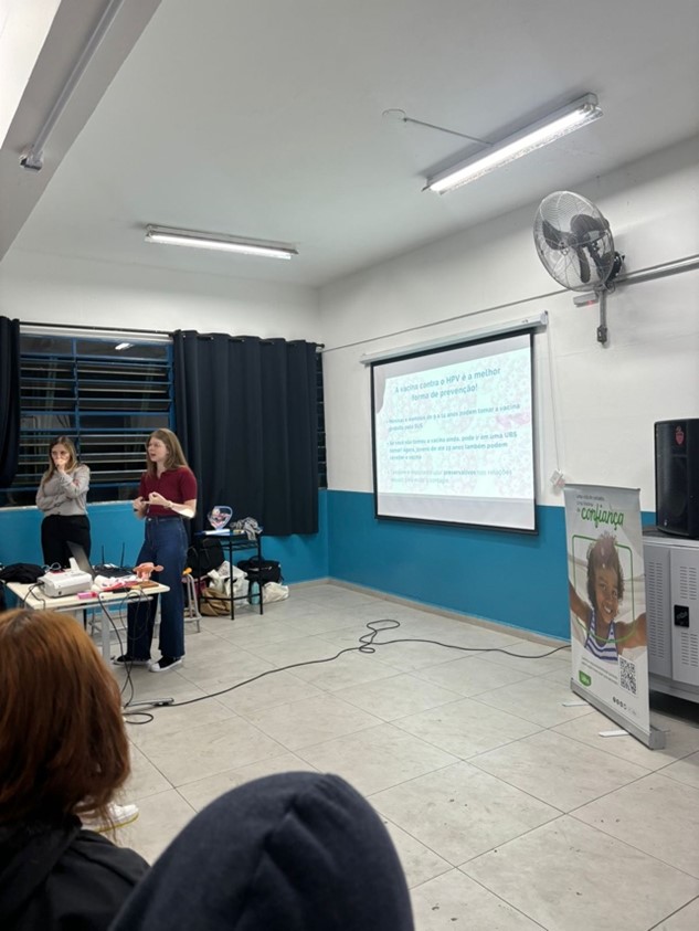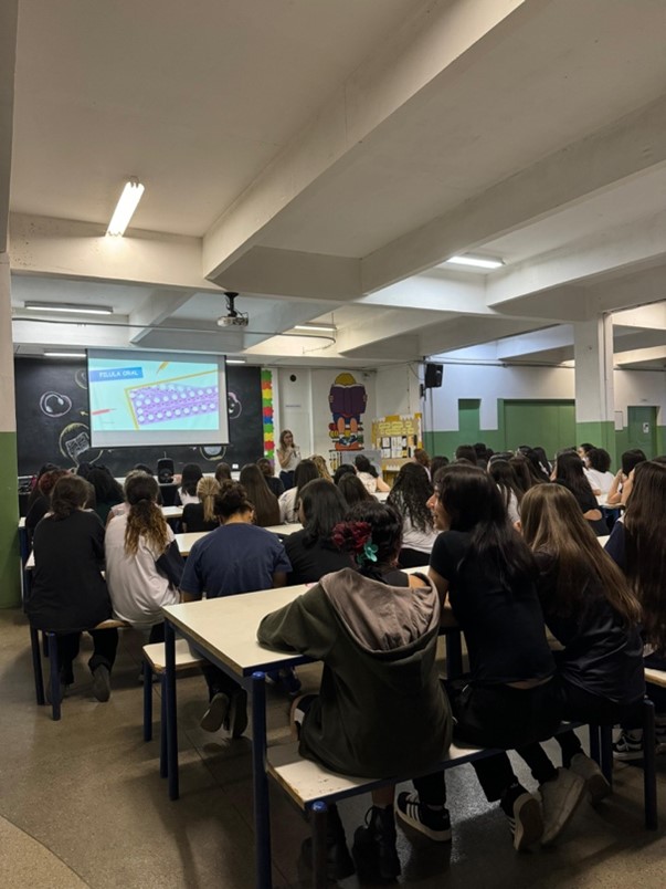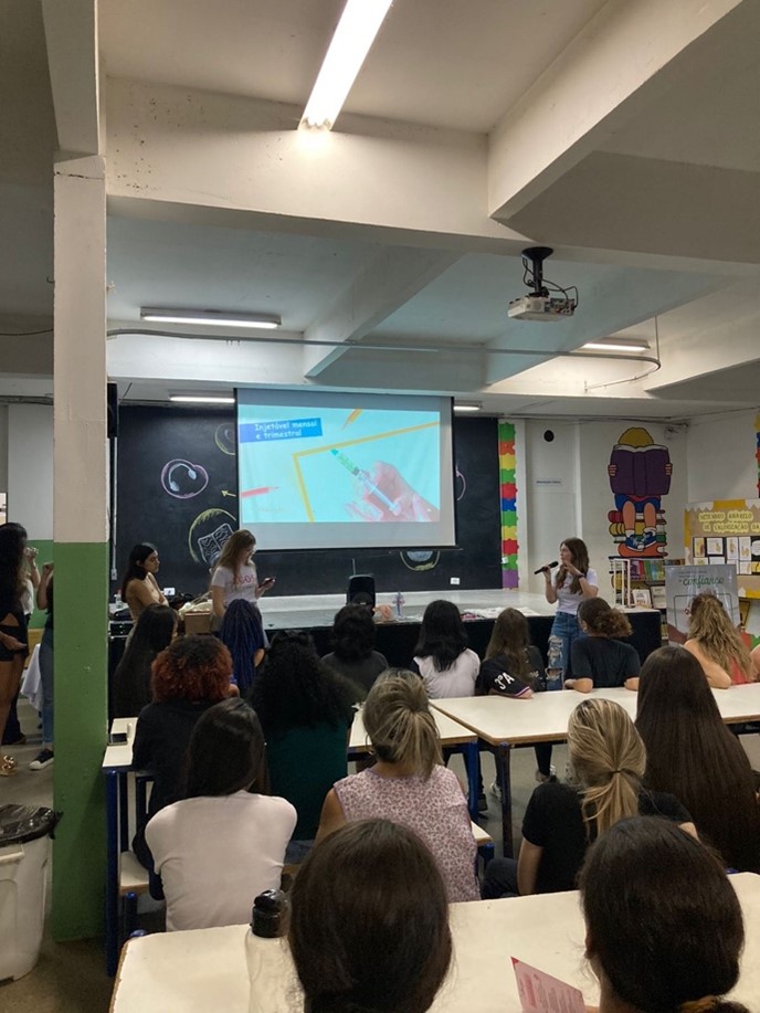 "Como setembro é o Mês de Conscientização sobre a Contracepção, também realizamos outro projeto social, no qual visitamos escolas para falar sobre o tema", conta a presidente da Liga de Ginecologia e Obstetrícia. "No ano passado, fomos à Escola Estadual Dr. Arthur Cyrillo Freire e, neste ano, retornamos à escola, assim como na outra, a Escola Beathris Caixeiro Del Cistia", completa Marina.