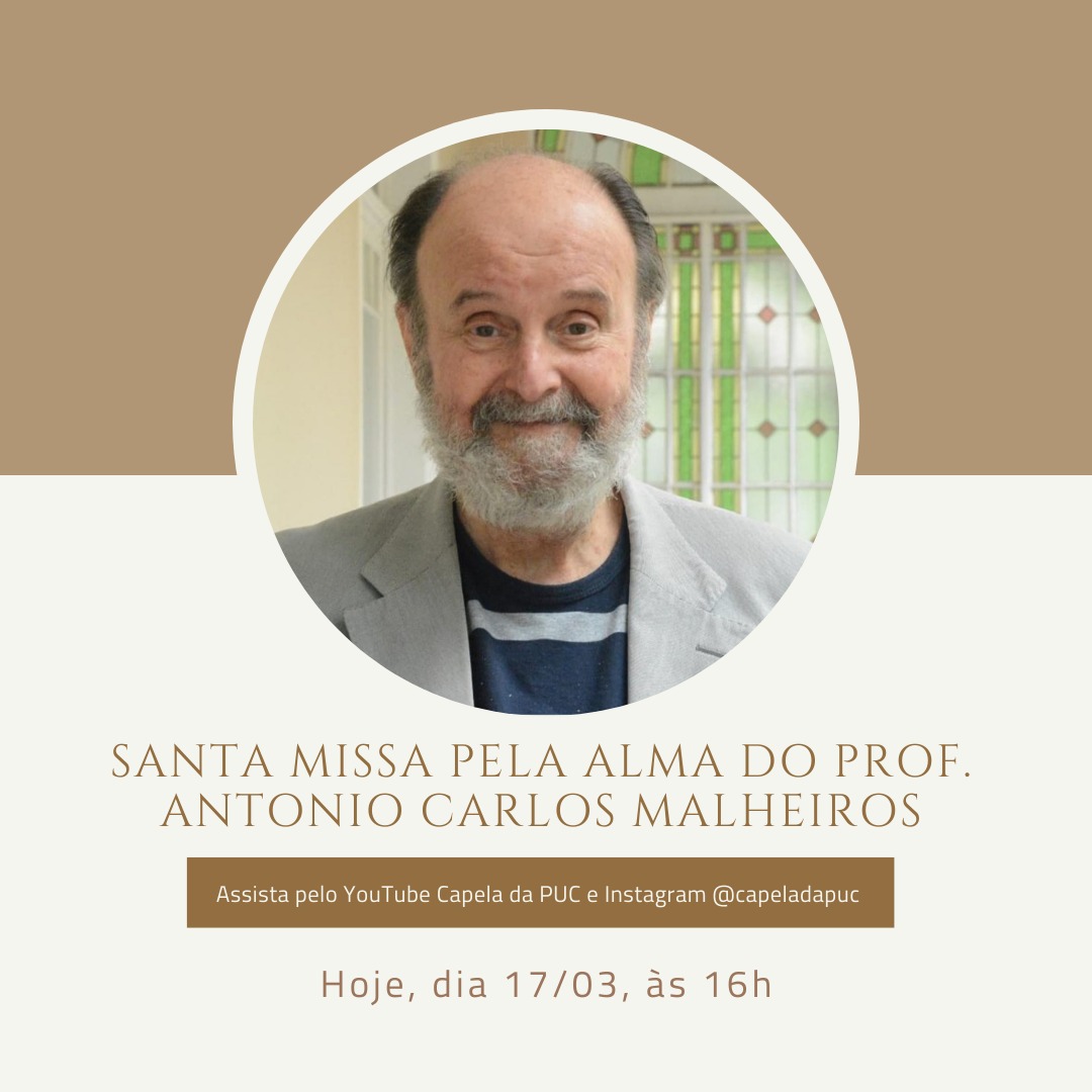 Neste dia 17/3, às 16h, haverá celebração de uma missa pelo prof Antonio Carlos Malheiros, na Capela da PUC-SP. Não haverá público, mas será transmitida pelo YouTube e Instagram da Capela.