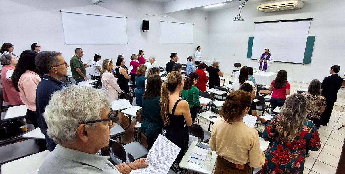 Em sua homilia, o Padre Rodrigo refletiu sobre o tempo do Advento e o significado do Reino de Deus, destacando que a glória divina se manifesta quando todos têm vida plena. Ele enfatizou que o trabalho diário de cada pessoa presente – seja no ensino, na pesquisa ou na administração – contribui para que outros tenham vida, tornando-se, assim, instrumento da glória de Deus.