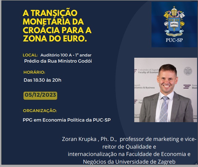 O Pós em Economia Política realiza a palestra A transição monetária da Croácia para a Zona do Euro, dia 5/12, às 18h30.
