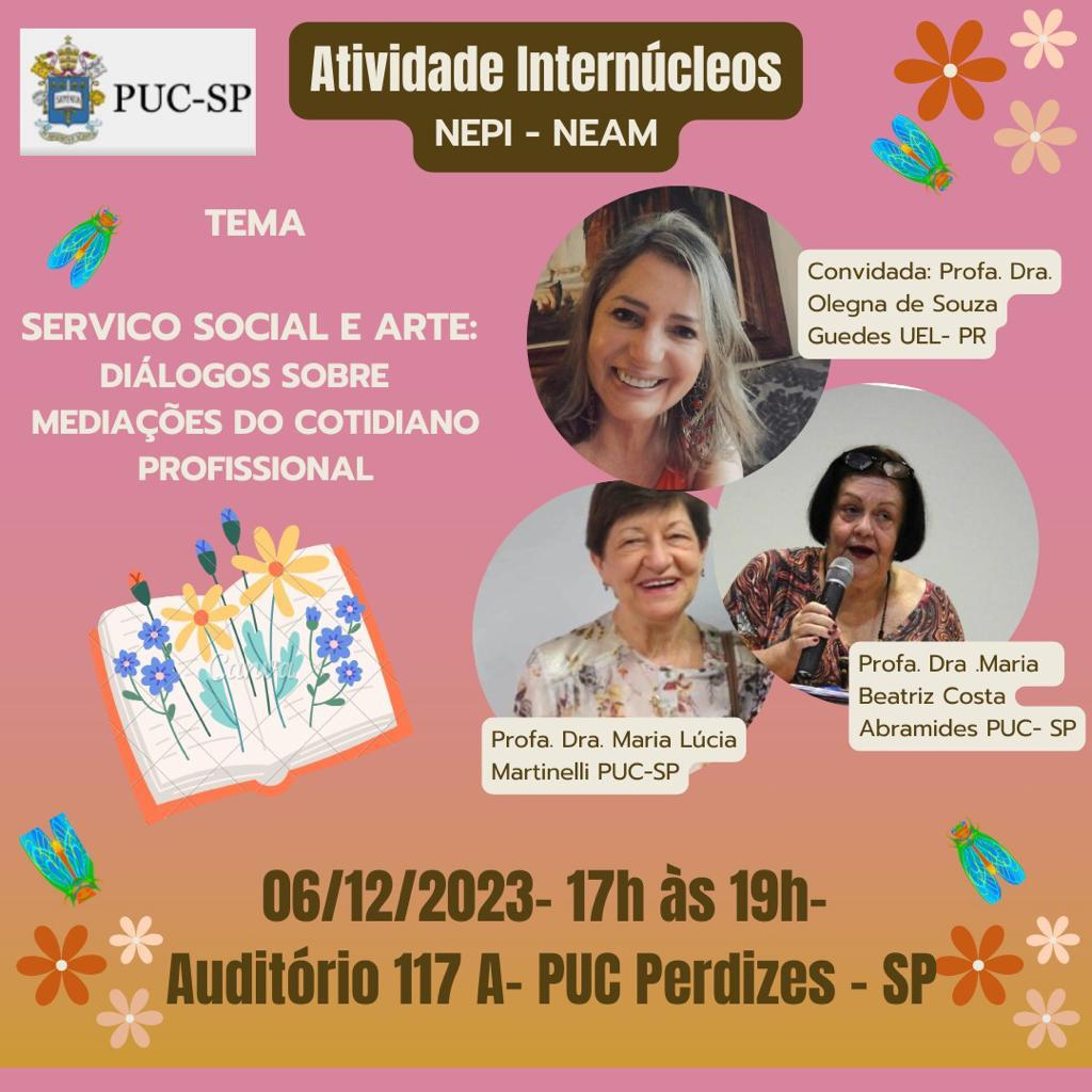 O Pós em Serviço Social realiza atividade internúcleos, com o tema Serviço Social e Arte: Diálogos sobre mediações do cotidiano profissional, dia 6/12, no campus Monte Alegre. Veja a seguir: