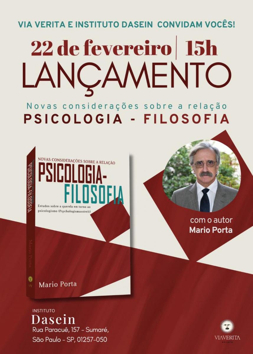 No dia 22/2, o prof. Mario Porta lança em São Paulo seu mais novo livro "Novas Considerações sobre a Relação entre Psicologia e Filosofia".