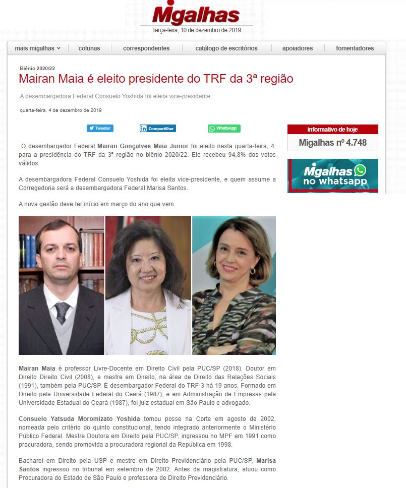 Confira matéria completa no site Migalhas: http://bit.ly/36xX0BR