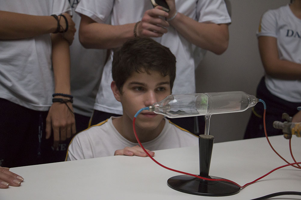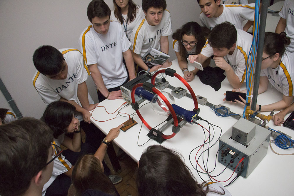 A aula especial, realizada no laboratório de engenharia da PUC-SP, possibilitou aos alunos ter contato com aparelhos que reproduzem experimentos de físicos do século XIX.