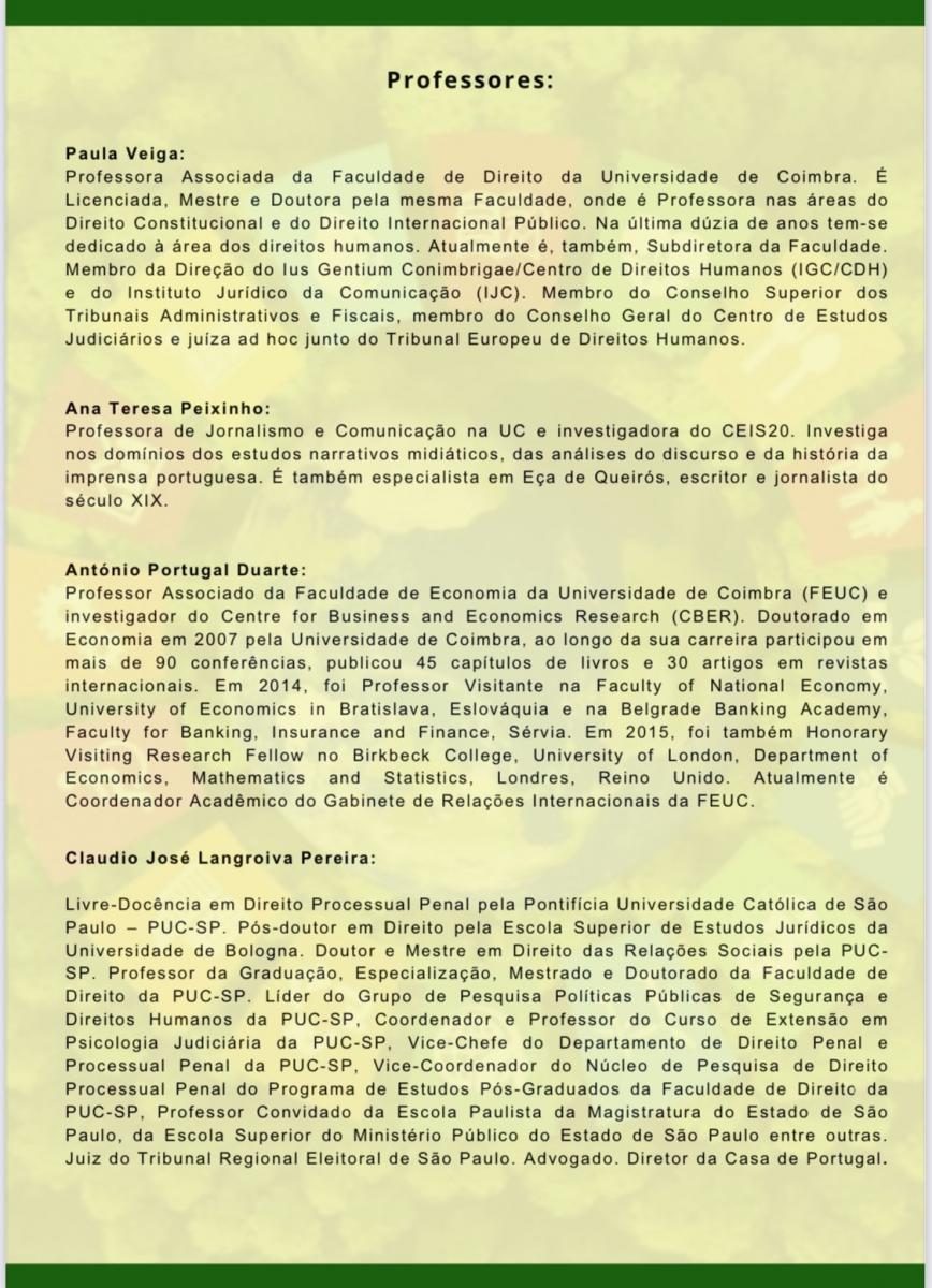 Docente integra primeiro curso da Universidade de Coimbra no Brasil