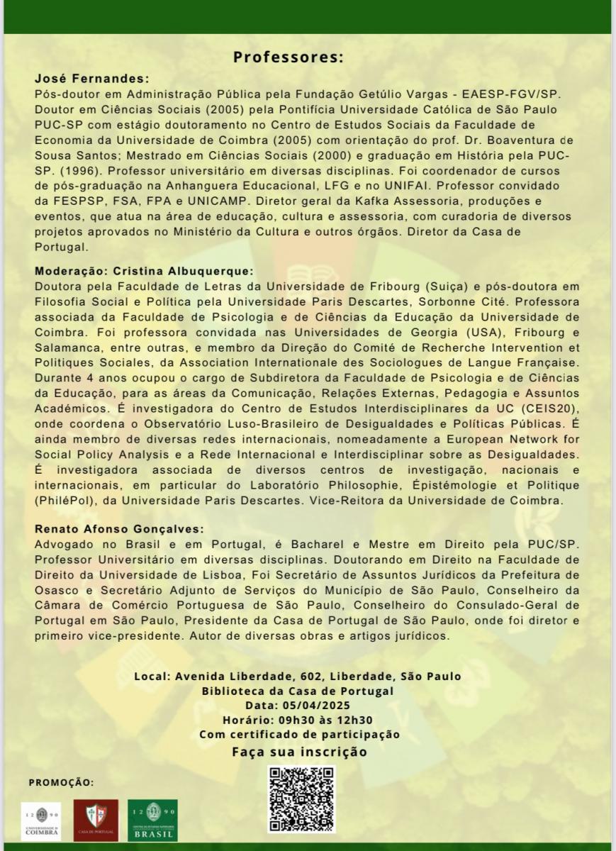 O prof. Claudio Langroiva (Direito) participa do primeiro curso da Universidade de Coimbra no Brasil. A atividade será gratuita, com certificado. Haverá também transmissão on line (clique para se inscrever e ter acesso).
