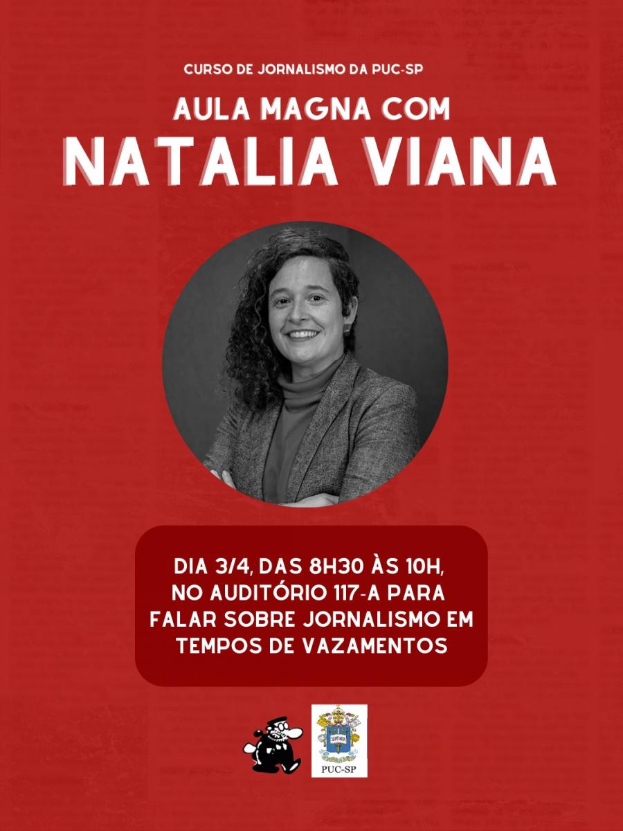 O curso de Jornalismo recebe para sua aula magna Natália Viana, diretora e criadora da Agência Pública. O evento acontece dia 3/4, às 8h30, no auditório 117-A (1º andar, prédio novo, campus Monte Alegre).