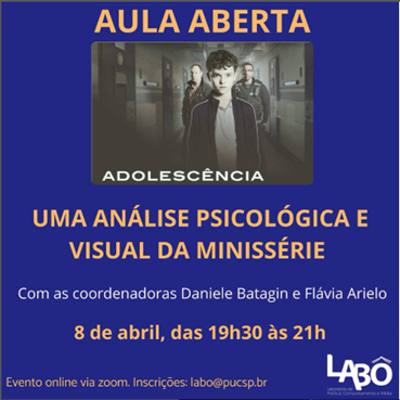 Dia 8 de abril, às 19h30, AULA ONLINE SÍNCRONA VIA ZOOM. Mande seu nome completo para labo@pucsp.br